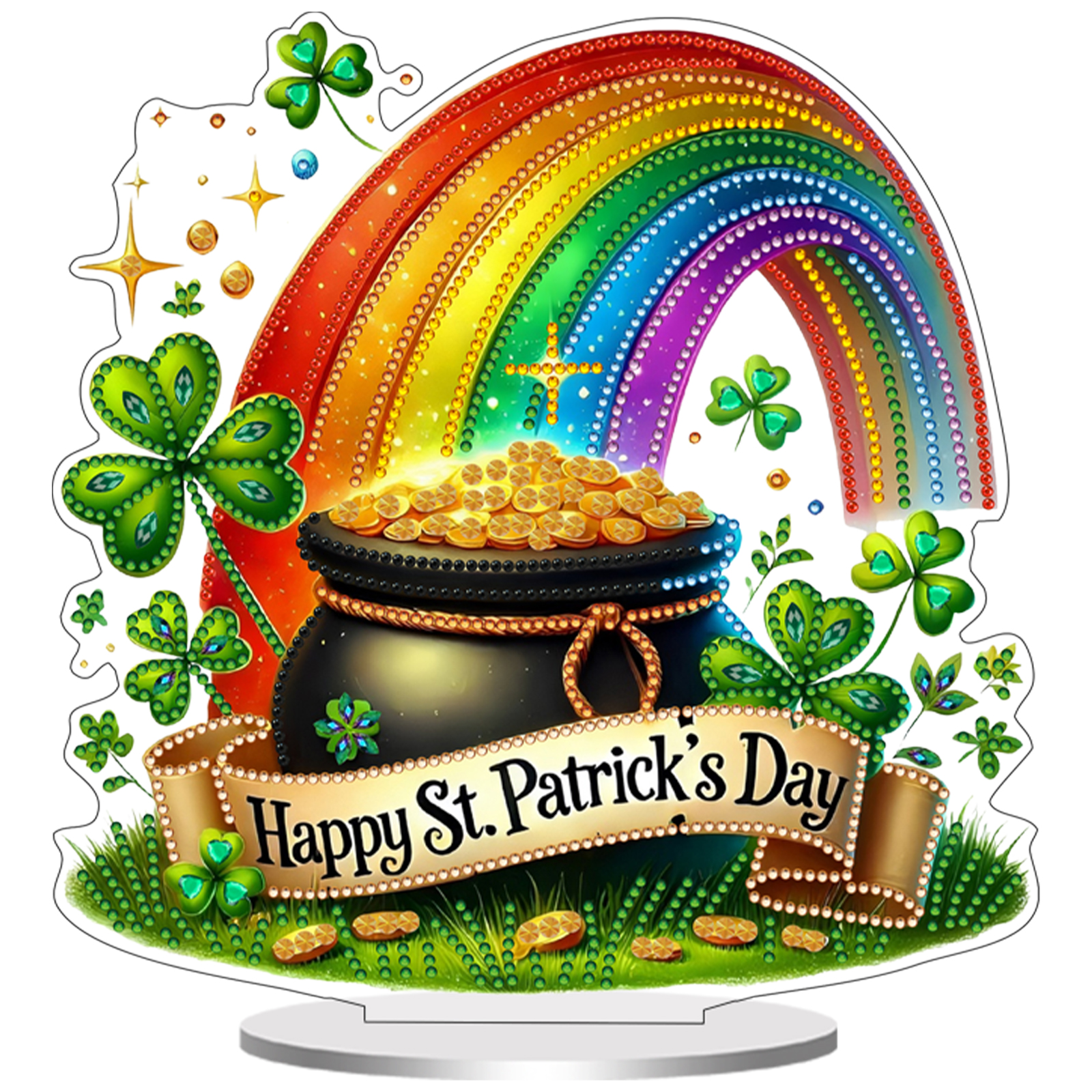 2D Flat DIY St Patricks Day Diamond Painting Tabletop Ornaments Kit Special Shape Crystal Art Craft Decoration Single Side Drill for Living Room Home Office Decoration