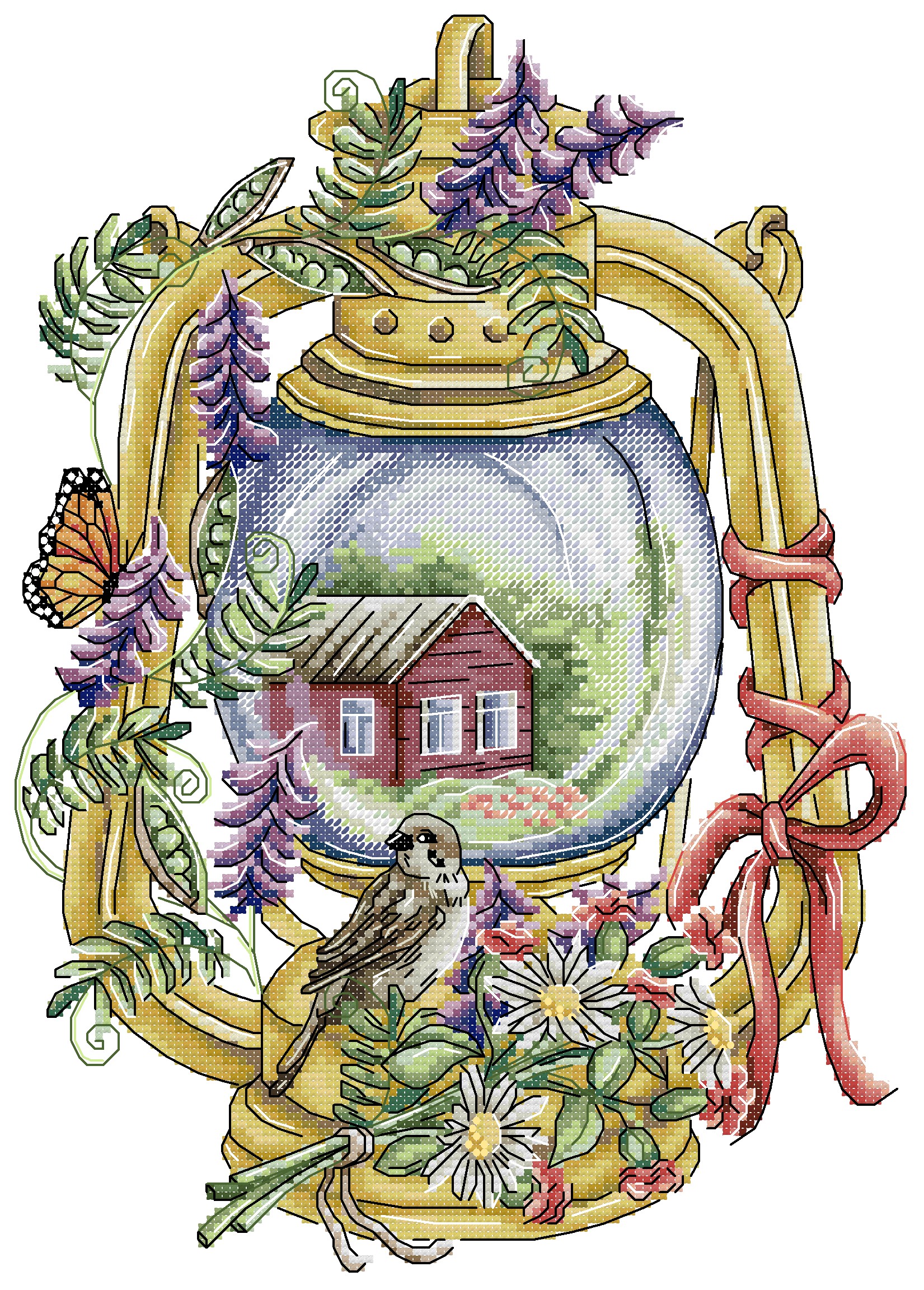 Joysunday 14CT Stamped Cross Stitch - Bird Lantern - Summer (28*37cm)