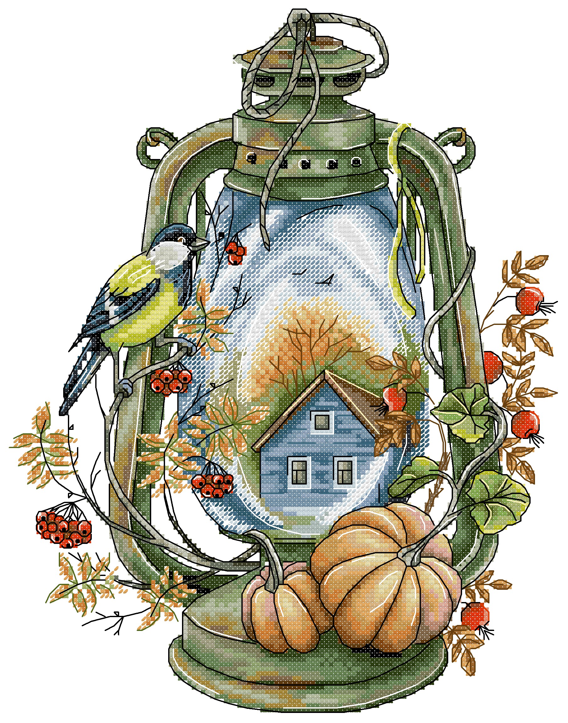 Joysunday 14CT Stamped Cross Stitch - Bird Lantern - Autumn (30*36cm)